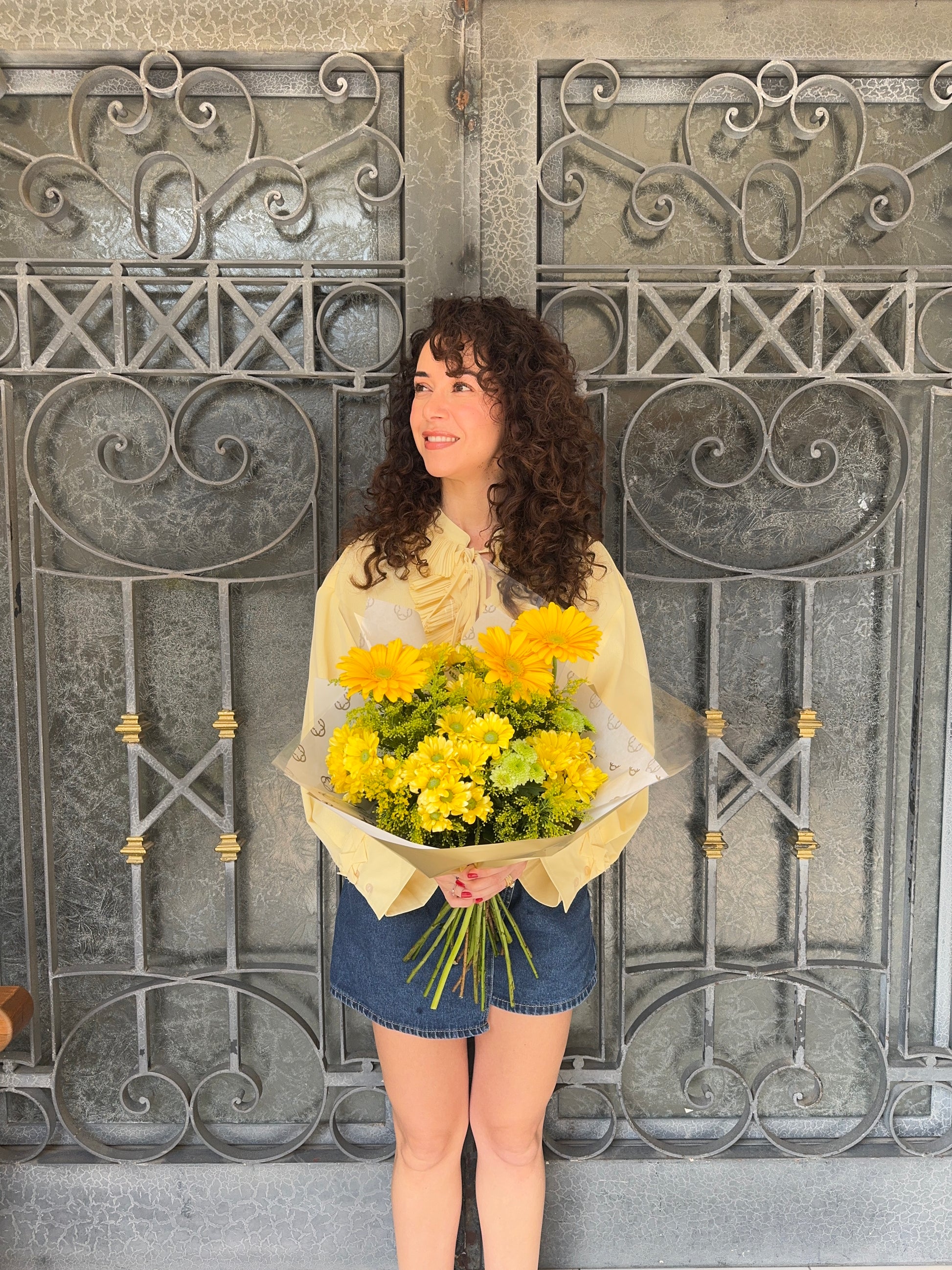 Composición floral en tonos amarillos intensos con verde, pensado para celebrar la temporada de la vibra amarilla.